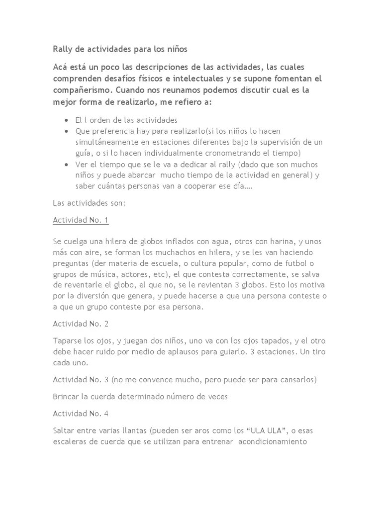 El siguiente rally es un recorrido en grupo por diferentes estaciones realizando actividades divertidas, podrán hacer las actividades en desorden, al final del .
